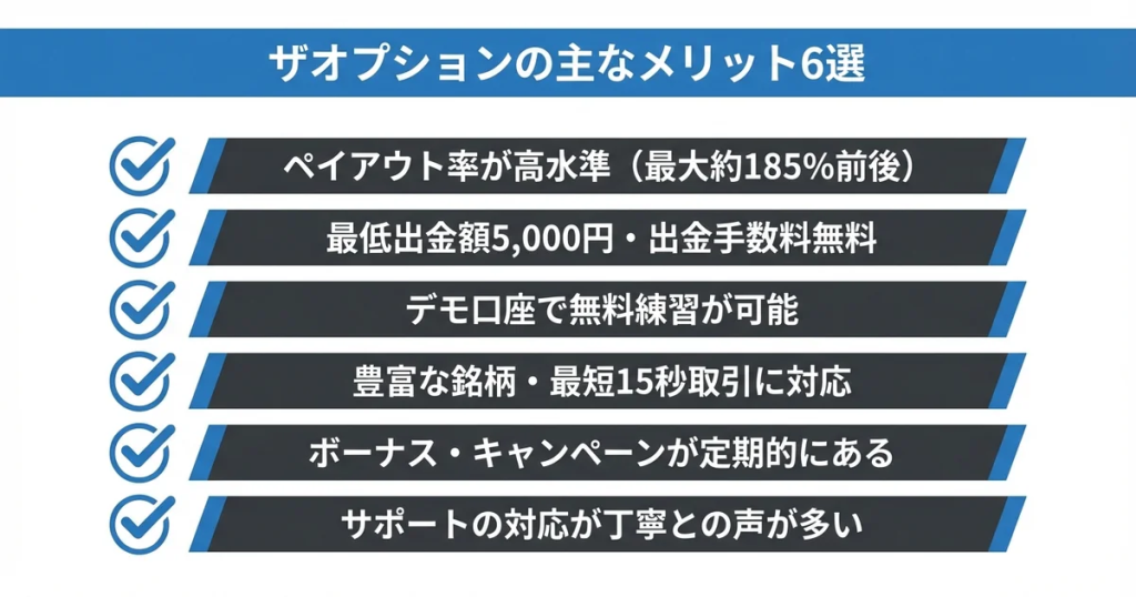 次のセクションでは、ザオプションの良い評判・口コミからメリットを具体的に見ていきます。