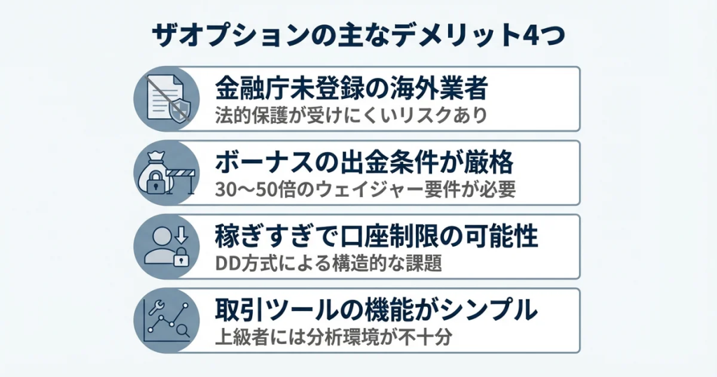 ザオプションも例外ではなく、同様のリスクが指摘されています。