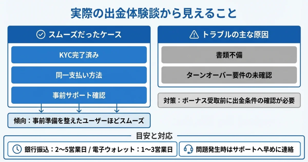 - 実際の出金体験談・出金拒否トラブルの事例と回避策