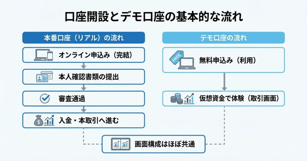 まずは資金を入れずにデモ口座で操作感を確認することが、リスクを抑えた最初のステップになります。
