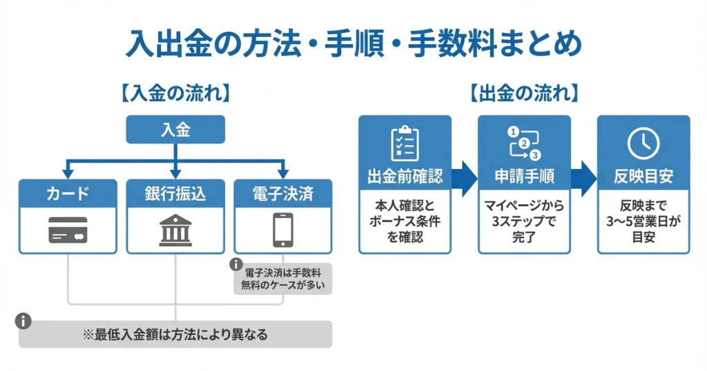- 入金方法と出金方法が一致しない場合、別途確認が必要になることがある