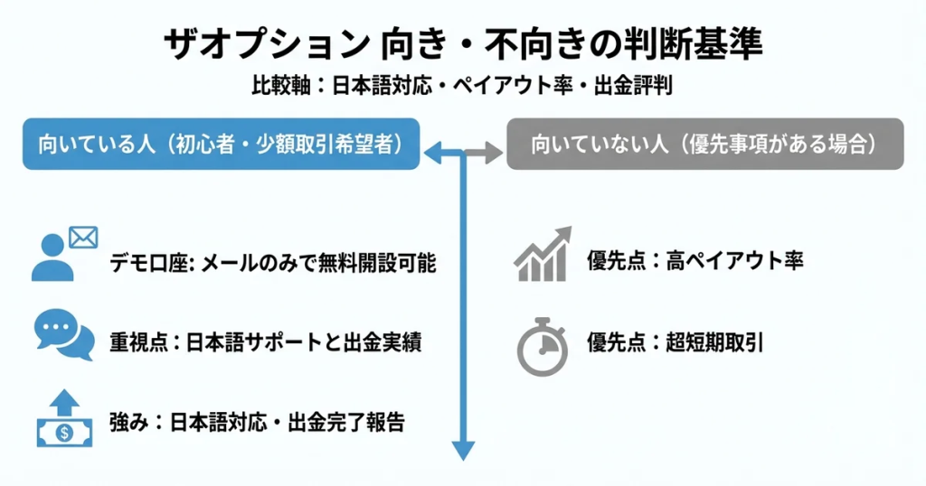 次のセクションでは、ザオプションが向いている人・向いていない人を具体的に整理します。